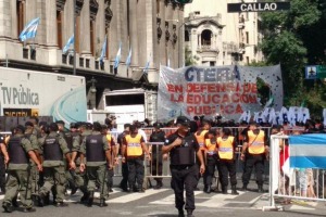 Pese al extenso vallado y al inmenso operativo de seguridad, docentes de CTERA traspasaron el cerco policial y reclamaron frente al Congreso por la convocatoria a la paritaria nacional para el sector. Fue minutos antes de la llegada del Presidente para inaugurar las sesiones ordinarias.
