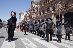 Los pasajeros que descienden de las formaciones son frenados apenas cruzan los molinetes por los agentes, quienes les exigen la exhibición de sus documentos, en otra maniobra de amedrentamiento dispuesta por el Ministerio de Seguridad.