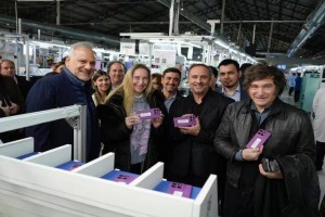 El Presidente aterrizó en Ushuaia pasado el mediodía y fue directo a una recorrida por una de las plantas de Newsan. Luego dio notas a medios locales, previo a la caminata por el centro. En la puerta del hotel se reunieron manifestantes con pancartas contra el mandatario y su hermana Karina Milei.