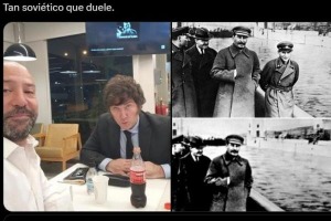 La cuenta “El Trumpista” subió una foto para bancar al Presidente en una YPF, pero otro usuario señala que borraron digitalmente a spagnuolo de la mesa y arma un collage con las famosas imágenes retocadas del dictador soviético. el episodio desata burlas y críticas por el culto a la personalidad libertario.