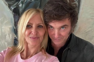 La conductora compartió una foto abrazada a Javier Milei y agregó un emoji de un corazón.