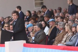 En medio de la interna oficialista, el libertario mantuvo un breve y frío intercambio con la vicepresidenta. Sin embargo, reaccionó de otra manera cuando descubrió a la periodista y pareja de Luis Petri en el palco. El video.