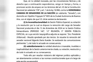 Al igual que el Gobierno, el senador Edgardo Kueider apuntó contra la figura de la vicepresidenta Victoria Villarruel, quien presidió la sesión durante la cual se votó su expulsión mientras no estaba Milei en el país. Para el Ejecutivo, seguir ese argumento sería admitir un error administrativo.